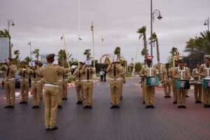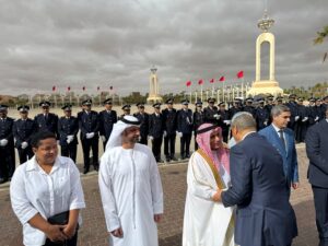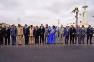 حيث شهد فضاء قصر المؤتمرات إنطلاق مراسيم الحفل بتحية العلم والذي ترأسها والي جهة العيون الساقية الحمراء مرفوقا بوالي الامن بالنيابة ،وبحضور منتخبي الإقليم وشيوخ القبائل وممثلي الهيئات الدبلوماسية المعتمدة بجهة العيون الساقية الحمراء ورجال الإعلام والصحافة.