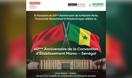 تخليداً للذكرى الستين لاتفاقية إقامة العلاقات بين المغرب والسنغال، التي أرست سنة 1964 أسس تعاون ثنائي متين ومستدام بين البلدين الشقيقين ، تنظم جامعة محمد السادس متعددة التخصصات التقنية (UM6P) يوم الاثنين المقبل بمقر المعهد الإفريقي للأبحاث في الفلاحة المستدامة بالعيون، لقاءً علمياً ، ويأتي هذا الحدث بتعاون مع معهد تمبكتو – المركز الإفريقي لدراسات السلام بدكار، في إطار ترسيخ روح الشراكة الإفريقية القائمة على التعاون والتكامل.