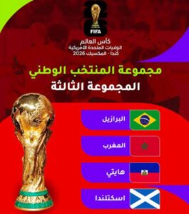 أسفرت قرعة نهائيات كأس العالم 2026، التي جرى سحبها مساء الجمعة 5 دجنبر 2025 في العاصمة الأمريكية واشنطن، عن وقوع المنتخب الوطني المغربي في المجموعة الثالثة إلى جانب منتخبات البرازيل واسكتلندا وهايتي.