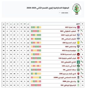 الترتيب النهائي عقب نهاية الجولة 22 من البطولة الإحترافية في قسمها الثاني