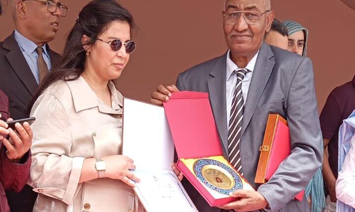 وجرى حفل التكريم بحضور والي جهة كلميم وادنون وعدد من المنتخبين ورؤساء المصالح الخارجية وفعاليات المجتمع المدني خلال إنزال ستار الملتقى في لحظة العرفان بإسهامات القيدوم “محمد زازة”.